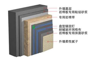 產品名稱:SJ巖棉板(帶)薄抹灰外墻外保溫系統
